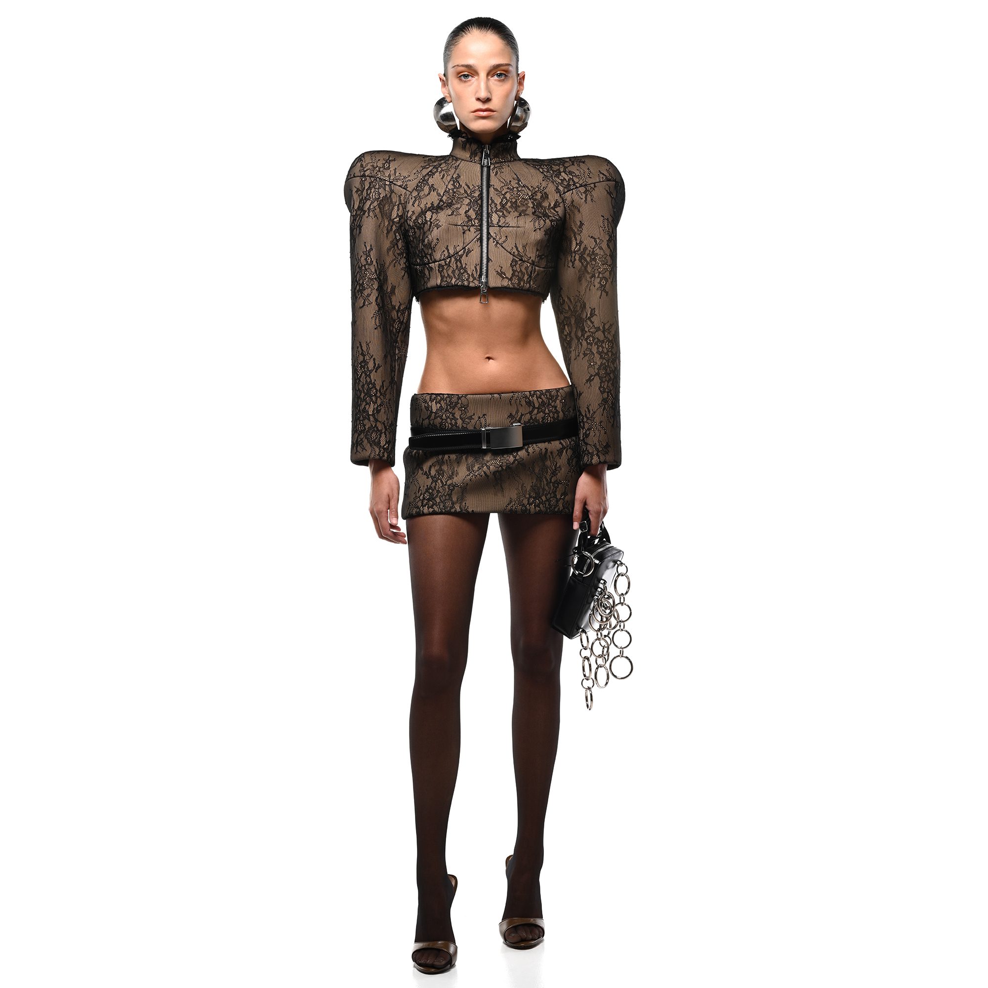 This Lace Mini Skirt is crafted from sheer floral lace. It features a fitted silhouette for a sleek and minimalist design. Fits true to size. Take your normal size. Designed and made in Tbilisi, Georgia.
