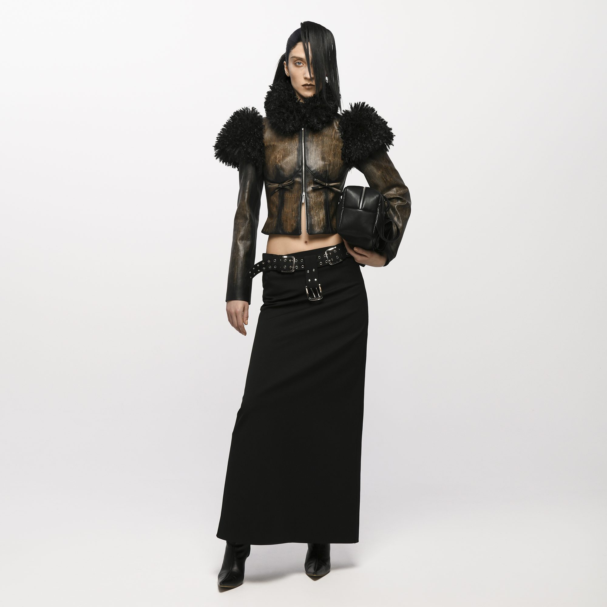 This maxi skirt features a clean, longline silhouette with a high-rise waist. The minimal construction enhances the fluid, elongated shape, finished with a belt detail for a defined fit. Fits true to size. Take your normal size. Designed and made in Tbilisi, Georgia.