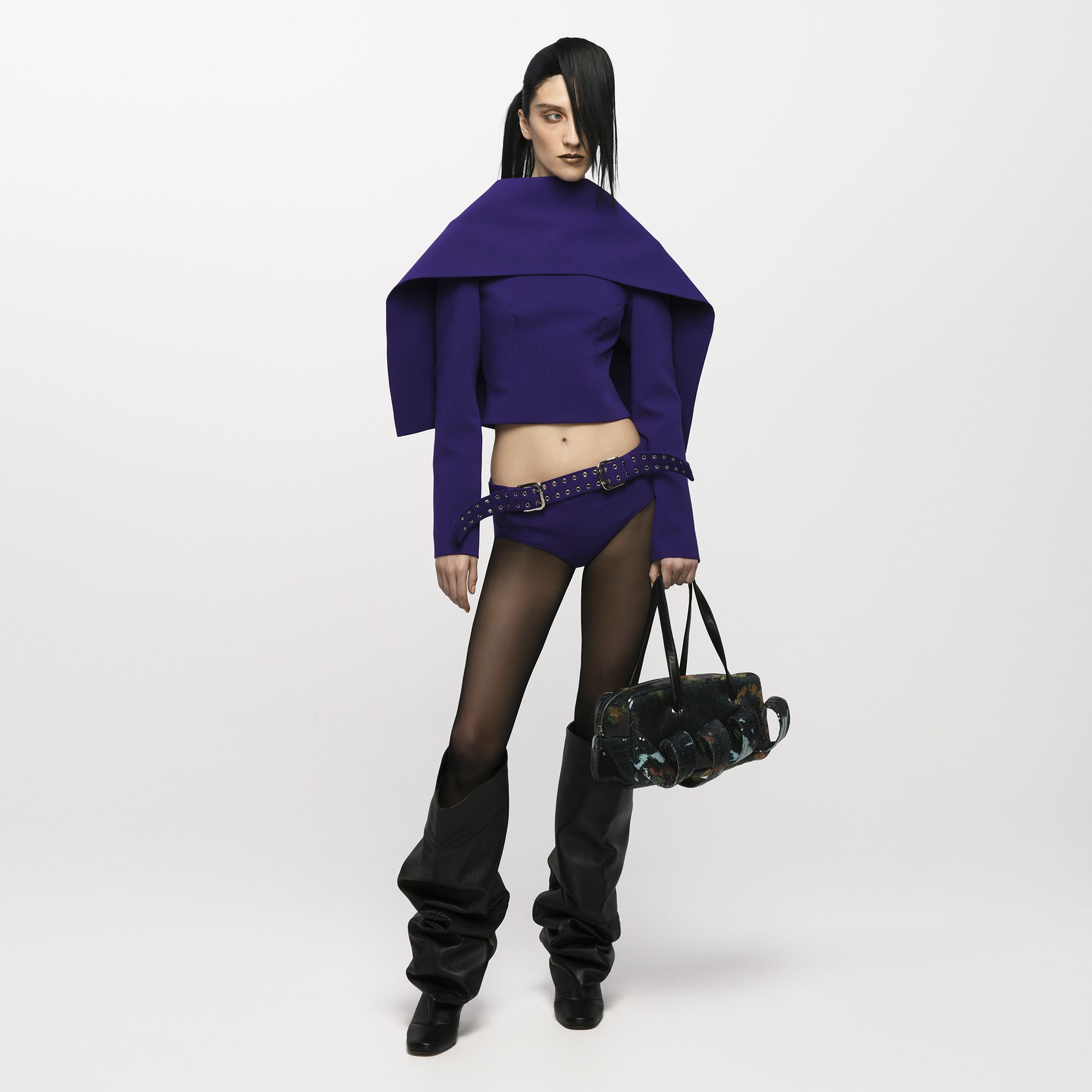 These shorts feature a structured, high-rise silhouette with a clean, minimal cut. The double belt detail with metal eyelets enhances the defined shape and adds a distinctive edge. Fits true to size. Take your normal size. Designed and made in Tbilisi, Georgia.